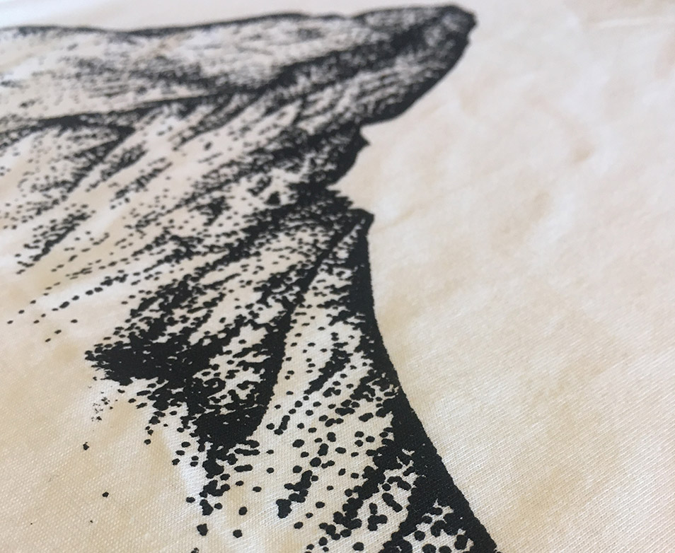 In Zusammenarbeit mit Erika »Ulligunde« Dürr entstand dieses minimalistische Matterhorn-Shirt aus 100% Bio-Baumwolle. Die Zeichnung stammt aus einer Reihe von montanen Zeichnungen, die neben dem Schweizer Matterhorn auch Berge wie die Drei Zinnen, Cerro Torre, Watzmann, Hochvogel und Elbrus abbilden. Alle Werke sind auch auf der Website zu finden:
